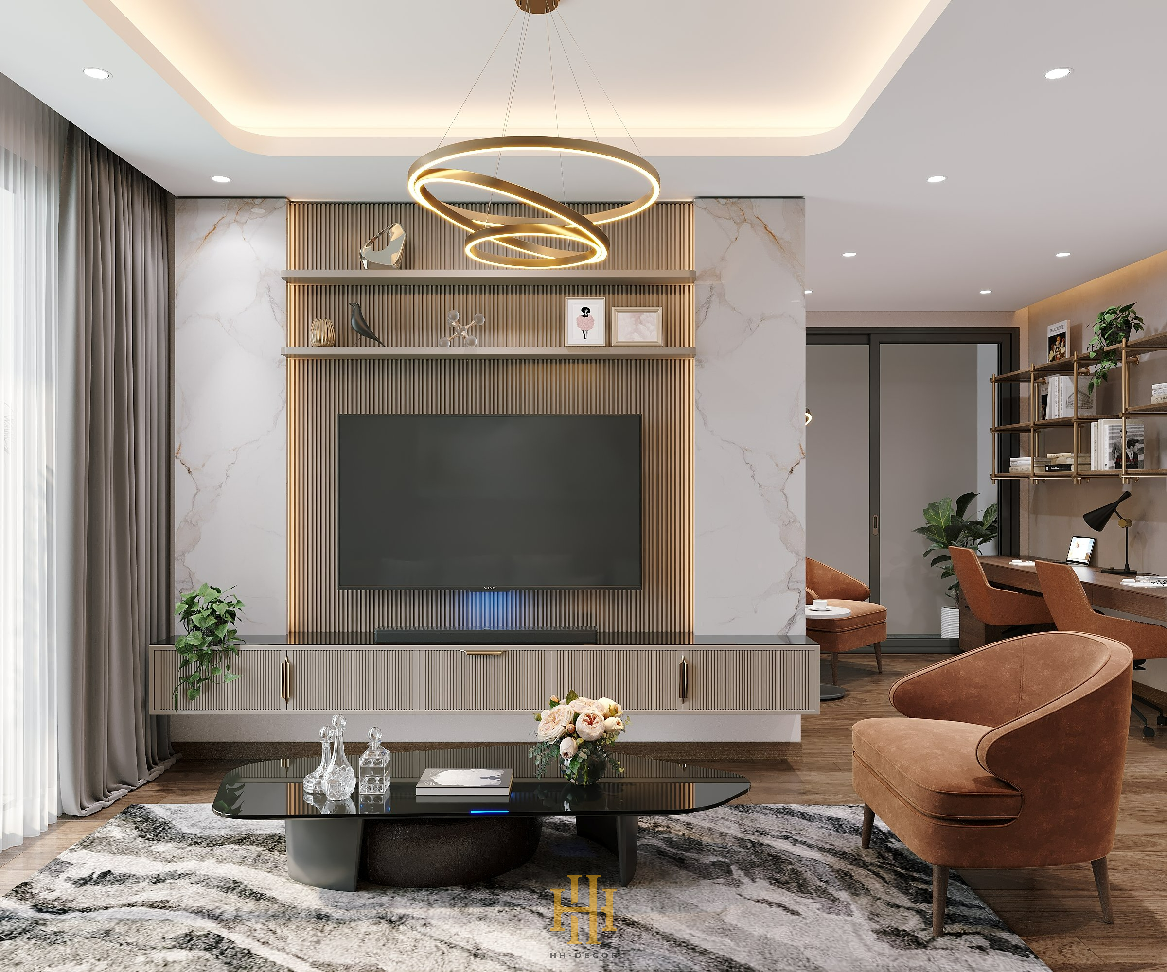 Công năng: Phòng khách và bếp, 2 Phòng ngủ, 2 WC, Khu vực làm việc